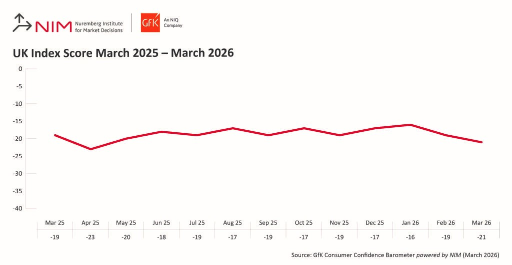 GfK’s long-running consumer confidence index dropped two points to minus 21 this month amid expectations of further sharp price rises.