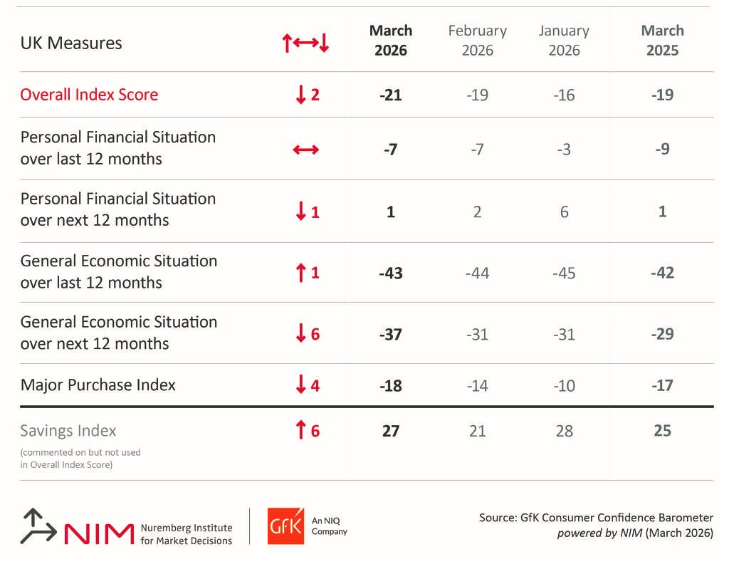 “Moreover, the decline in purchasing intentions, coupled with a six-point rise in the savings index, indicates people are holding on to their money and avoiding making major purchases while they wait to see what the medium-term impact of the conflict will be.”